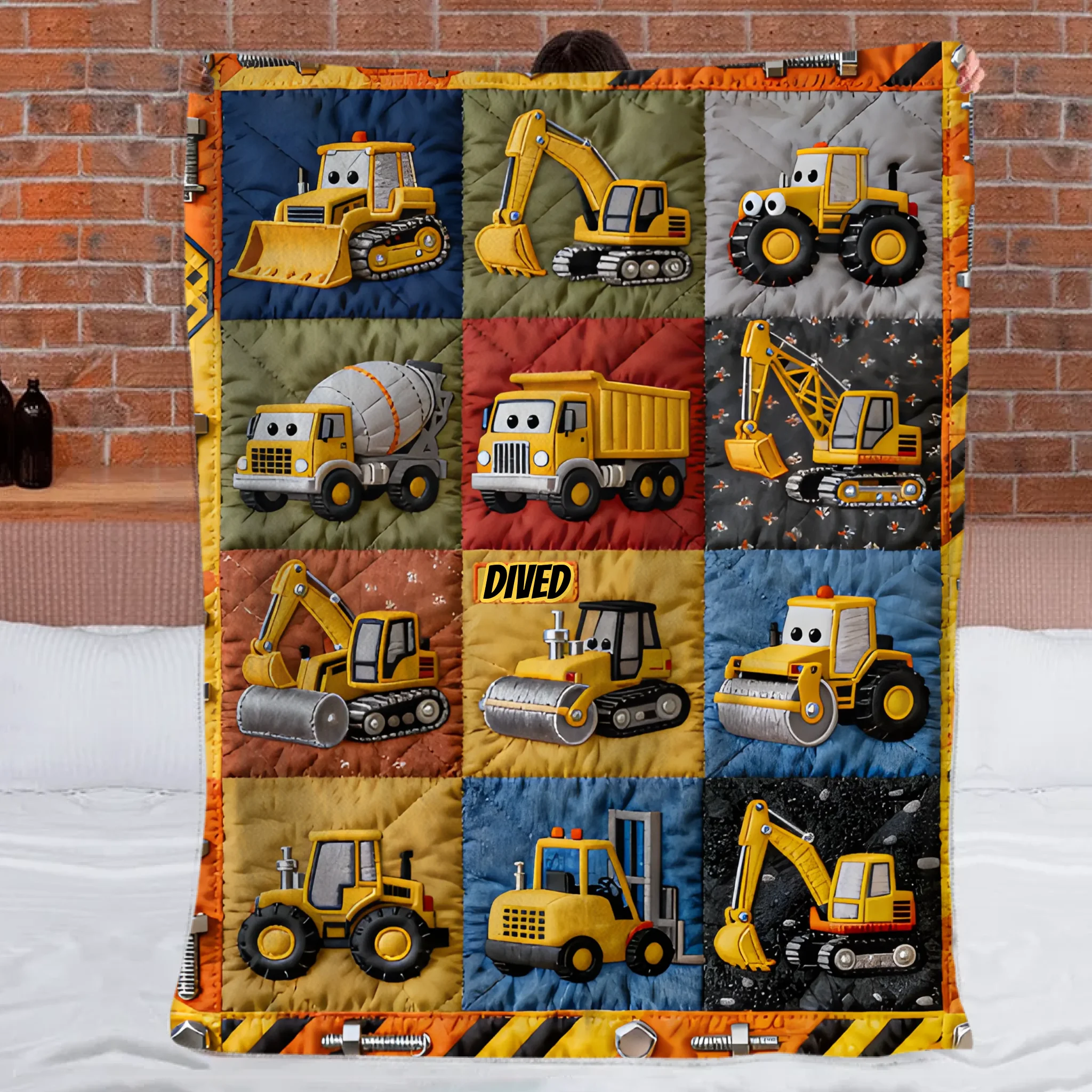 Available Product: Construction Machines Customized Blanket - Personalized Name - Gift For Kids, Children, Building Machinery Enthusiast