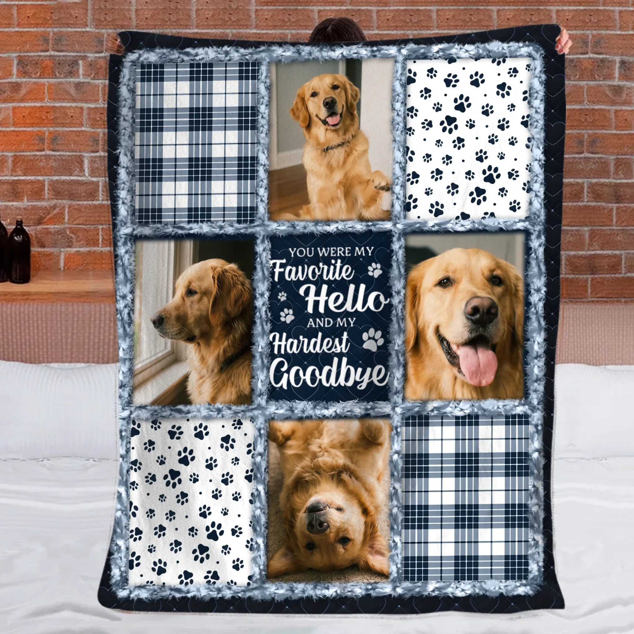 Custom Pet Memorial Collage Blanket – Paw Prints & Photos – In Loving Memory Gift