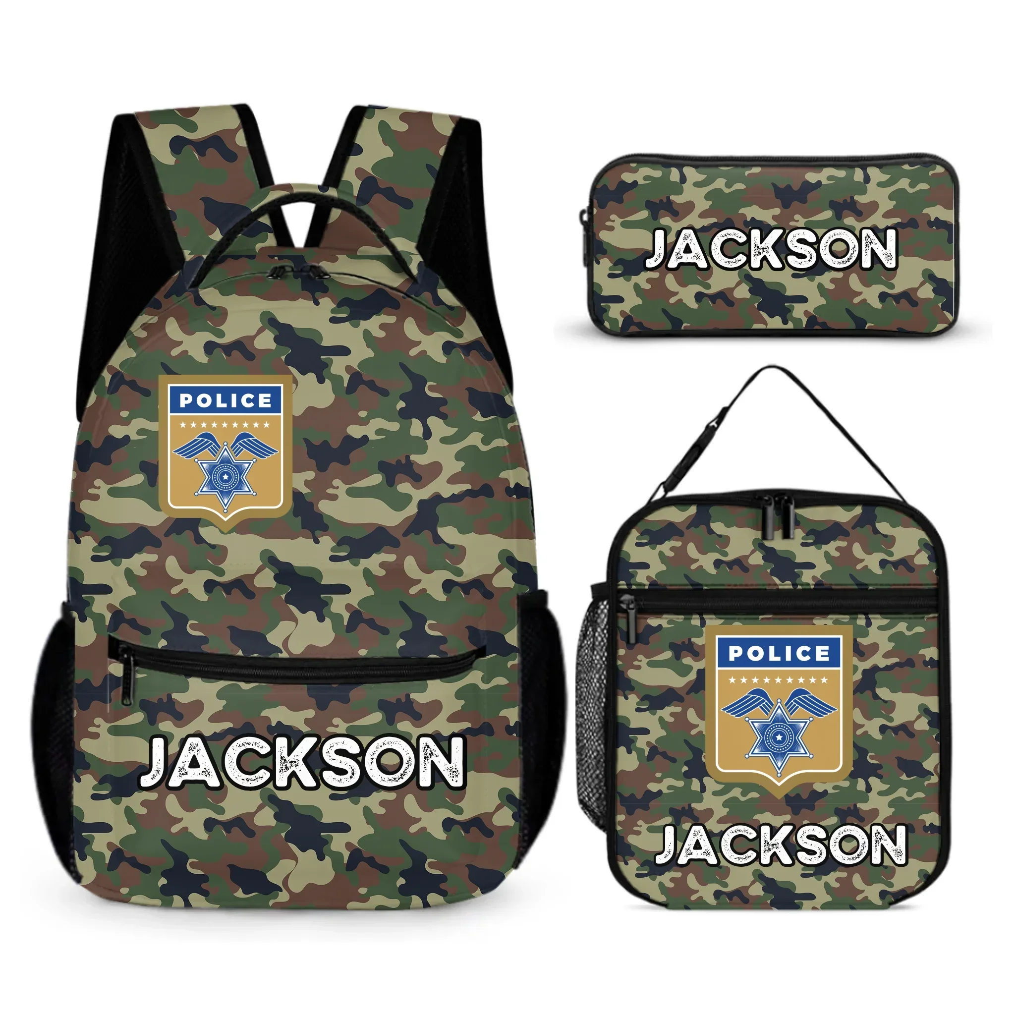 Customized Camouflage Backpack - Personalized Name and Police Badge