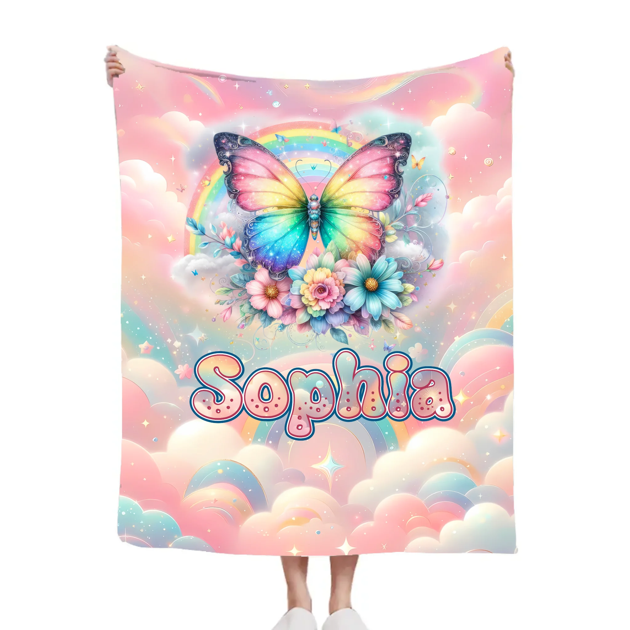 Available Product: Customized Colorful Butterfly Blanket - Personalized Name - Gift For Butterfly Lovers