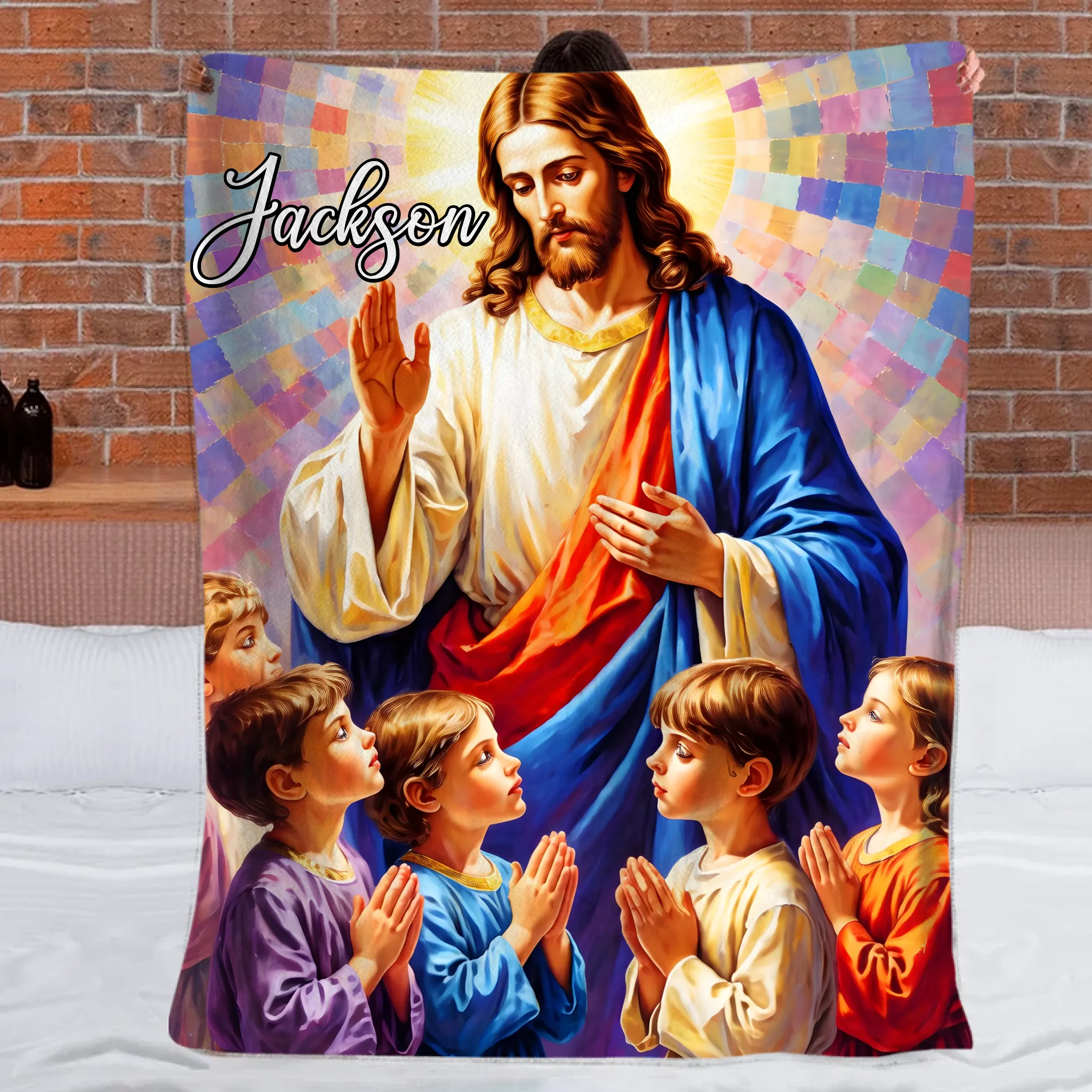 Available Product: Jesus Praying With Kids Customized Blanket - Personalized Name – Meaningful Faith Gift
