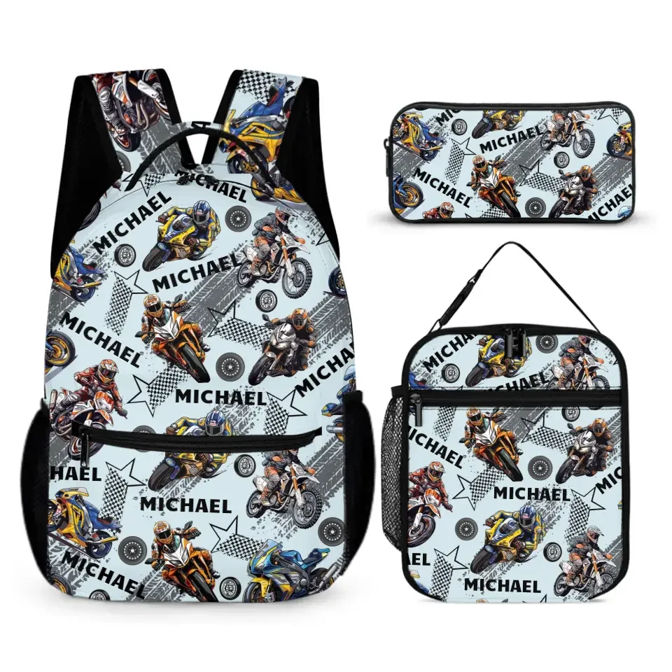 Available Product: Name Customized Kids Backpacks Motocross Motorcycle Themed Backpacks