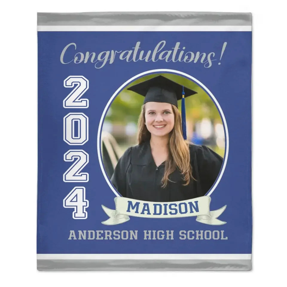 Personalized Graduation Blanket 2024 Graduate, Custom Photo,Name And School